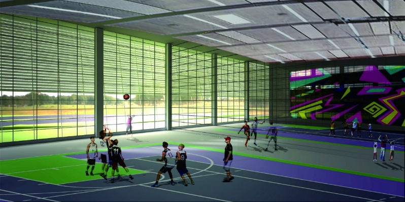 SOR UI merupakan salah satu fasilitas olahraga yang digunakan mahasiswa untuk kegiatan ekstrakuriler. SOR UI terdiri dari lapangan futsal, basket, dan volley. Selain itu terdapat fasilitas penunjanga seperti toilet, kamar mandi, ruang ganti, mushola dan tangga serta ramp untuk memfasilitasi penyandang disabilitas.