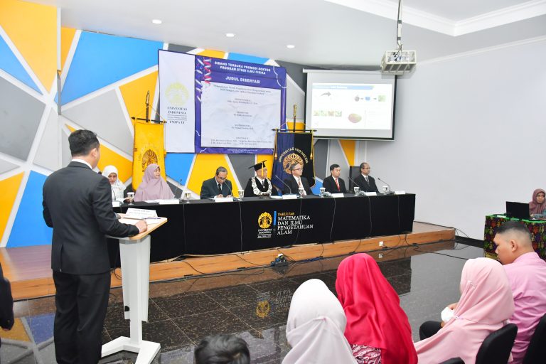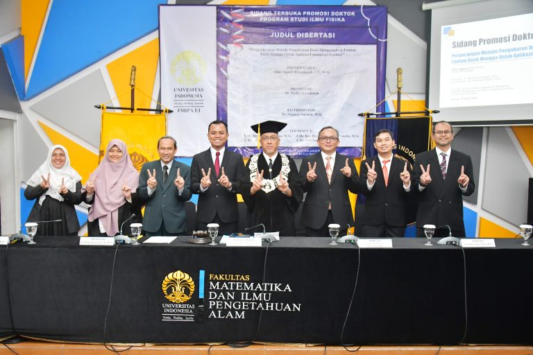 Dalam sidang tersebut, Dr. Okky Agassy Firmansyah dari Program Studi Ilmu Fisika FMIPA UI memaparkan disertasinya berjudul “Pengembangan Metode Pengukuran Dosis Menggunakan Fantom Buah Mangga untuk Aplikasi Fitosanitari Iradiasi.” Sidang dipimpin oleh Prof. Anom Bowolaksono, Ph.D., selaku Wakil Dekan Bidang Pendidikan, Penelitian, dan Kemahasiswaan FMIPA UI.