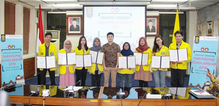 Selasa (15/5/2018) PT. Daewoong Pharmaceutical Company Indonesia memberikan beasiswa secara simbolik kepada mahasiswa FMIPA UI. Penyerahan ini dilakukan di ruangan rapat A Pusat Administrasi Universitas (PAU) UI Depok oleh perwakilan Daewoong Indonesia, yakni Yang Woong Yeol selaku Kepala Kantor Perwakilan Daewoong Pharmaceutical Co. Ltd., Lee Jihyun selaku General Manager, Abraham Simon, S.H., LL.M. selaku Legal Affairs Manager dan Lee Eui Nam selaku Kepala Penelitian UI-Daewoong