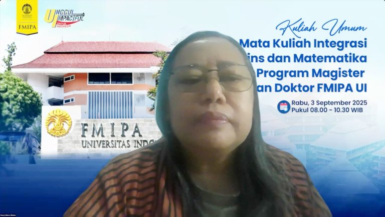 The Faculty of Mathematics and Natural Sciences, Universitas Indonesia (FMIPA UI), held an online public lecture for the Science and Mathematics Integration Course (MKI SainsMat) on Wednesday (September 3, 2025). This course is part of the 2024 Curriculum, designed to foster cross-disciplinary collaboration in addressing global challenges, particularly those related to the Sustainable Development Goals (SDGs).