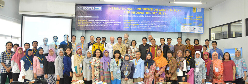 International Conference on Graph Theory and Information Security (ICGTIS 2017) August 7 – 9, 2017 Universitas Indonesia, Depok, Indonesia A conference in honor of Martin Bača on his 60th birthday, jointly organized by Department of Mathematics, Universitas Indonesia and Indonesian Combinatorial Society (InaCombS). The International Conference on Graph Theory and Information Security (ICGTIS) 2017 will be held at Universitas Indonesia, Indonesia during 7-9 August 2017. The conference will be dedicated to Martin Bača for his 60th birthday. The conference is focussed on problems related to related to graph theory and information security. The topics of the conference include: