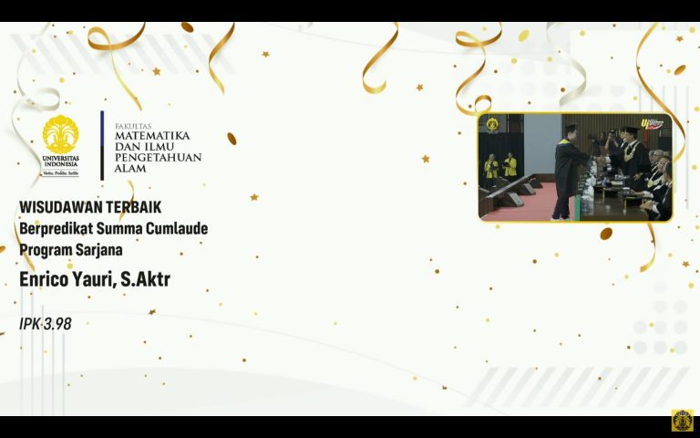 “Selamat dan sukses kepada para lulusan FMIPA UI. Kami bangga atas pencapaian akademik dan ketekunan kalian di tengah dinamika global yang penuh tantangan,” ujarnya.