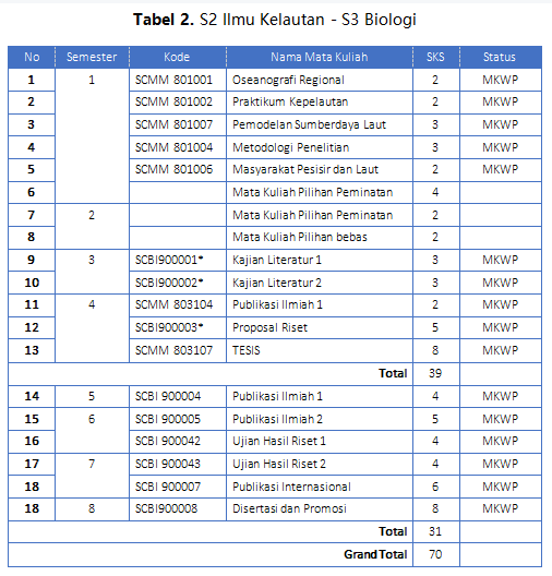 - Program Studi Magister Ilmu Kelautan – Program Studi Doktor Ilmu Biologi