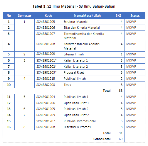 - Program Studi Magister Ilmu Material – Program Studi Doktor Ilmu Bahan-Bahan